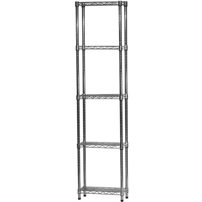 Offering a more compact profile, this 5-tier wire shelving can accommodate a diverse range of storage needs in narrow areas and smaller spaces where deeper solutions may be obtrusive. Open-wire design permits optimal air circulation, light penetration, and visibility. Strong chrome-plated steel construction. 800 lb capacity shelves can be adjusted easily in 1" increments along posts. Made for indoor use, dry storage only. NSF approved. To securely set or quickly remove shelves, tap their corners with a rubber mallet.