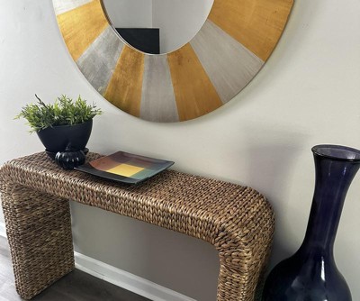 Wonderful console table for the front entry area. Table add a nice texture without taking up too much space. Very easy assembly. Solid wood base. We added some lights for a bit of interest.