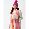 Looking for a classic scarf with a chic modern twist? You’ll love the Danny Scarf from Shiraleah! This vibrant, feminine winter accessory features a multicolored square print with alternating orange, pink, and white colors and a raw tufted hem. This classically chic layering piece is the perfect pop of color for your neutral winter outfits. Pair with other cold weather items from Shiraleah to complete your look!