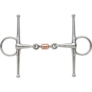 Achieve the ultimate balance of soft communication and precise control with a bit designed to eliminate resistance and encourage natural relaxation. The Shires Full Cheek Snaffle with Copper Peanut is the perfect solution for riders seeking a harmonious connection while ensuring their horse stays comfortable and focused during every transition.Engineered for professional-grade durability and anatomical comfort, this bit features high-quality stainless steel cheekpieces paired with a refined 13mm mouthpiece—a slim profile ideal for horses with limited mouth space or low palates. The double-jointed design removes the harsh "nutcracker" action found in single-jointed bits, while the central copper lozenge naturally warms to the horse's temperature to promote salivation and a soft, responsive jaw.Key Features & Specifications: Frequently Asked Questions:Q: Is this bit suitable for a young horse just starting under saddle?A: Absolutely. The 165mm full cheeks provide clear lateral pressure against the face, which helps "push" the horse into a turn, making it the preferred choice for teaching steering to green or young horses.Q: How should I measure for the correct fit to avoid rubbing?A: Shires bits are measured from the inside of one cheekpiece to the other. For a perfect fit, ensure there is approximately a one-finger gap (1/4 inch) of clearance on each side of the lips to prevent pinching while maintaining stability.Q: Is the copper peanut better than a standard stainless steel link?A: Yes, many horses prefer the copper peanut because it warms up faster in the mouth and has a sweeter taste, which encourages the horse to play with the bit and stay relaxed through the poll and jaw.Item Number/SKU: 6328S/STEEL4.5