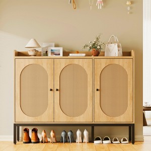 - Versatile Functionality: The modern shoe cabinet features rattan-woven doors that seamlessly integrate into bedrooms, living rooms, or hallways. It flexibly serves as a vanity, long nightstand, or key cabinet to meet diverse spatial needs.