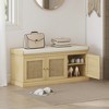 Shoe Storage Bench with Woven Rattan Doors, Shoe Bench with Cushion, Adjustable Shelves, Entryway Bench