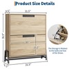 - Large Capacity Shoe Cabinet: The shoe cabinet measures 9.5''D x 31.5''W x 36.9''H. It can hold about 14-18 pairs of shoes. Each flip drawer has two layers of storage space inside, and the removable shelves can meet the storage needs of you and your family for a variety of different sizes or styles of shoes. The spacious desktop can store wallets, keys, plants, etc., allowing you to access items more easily