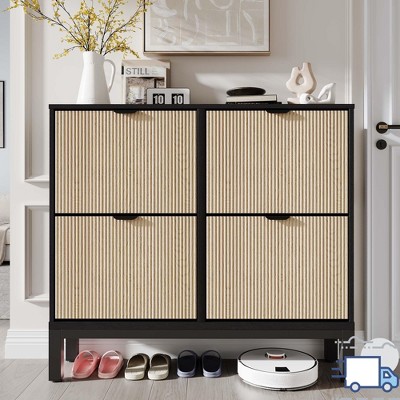 TIRAMISUBEST Shoe Storage Cabinet with 2 Flip Drawers, Slim Wooden Freestanding Shoe Organizer with Shelf for Entryway Hallway¨CHolds 24 Pairs, Black
