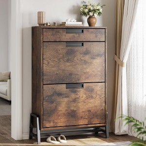 - Vintage Storage Solution for 22+ Pairs: Transform your cluttered entryway with this charming vintage style cabinet featuring 2 flip-up doors and a handy drawer. The customizable adjustable compartments inside effortlessly organize and conceal all your family's shoes