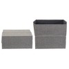 With its sleek style and versatility, this short collapsible storage bin is bound to keep any room of the home organized. No longer feel the need to tuck your storage out of view with the use of these elegant bins. This collapsible storage bin is made of a textured PET and cotton fabric in an elegant grey. The frame is designed to fold down for compact self-storage when not in use. The squared shape fits perfectly in most shelving and optimizes the available space. The top of this bin can be left open for quick access, but it can be closed as well. To close, the top section of the bin is built to fold in and out in an origami-like fashion. This smart design will protect the contents from dust without the need for a lid. The sleek style of this storage bin makes it great for a variety of storage uses. Use this bin in the bedroom to hold seasonal accessories, socks, underwear and heirlooms. Set this bin on a shelf in the office to hold files and assorted supplies. This can even be used in the living room to hold CDs, movies and more. The versatility and simple style of this short collapsible storage bin would be great for dorms and apartments--any home that has odd-end items to store. Unlike plastic bins, this fabric storage bin offers a layer of privacy and has an elegant touch. This will help your storage blend in with your decor and contribute a put-together look.