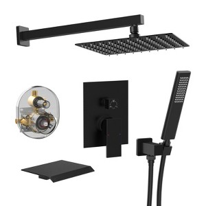Shower Faucet Set, Waterfall Shower System, High Pressure Rain Shower Head & Handheld Spray, Wall Mount Tub Faucet with Trim, Diverter, Matte Black