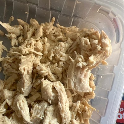 Shredded Chicken from Good & Gather™ is great to have around to make meal prepping a little easier, whether you're whipping up an entree for dinner or packing up sandwiches for lunch. Tender white meat chicken breast has been lightly seasoned and shredded for delicious flavor and convenient use. The shredded chicken is already fully cooked so all you have to do is heat it up, but it also tastes great cold — perfect for when you don't have a lot of time for meal prep. Plus, the chicken is all natural* with no artificial preservatives, artificial flavors or added MSG. Serve up this shredded chicken with barbecue sauce, corn on the cob and a salad for a tasty dinner, or pair with avocado, tomato and your favorite cheese for a yummy sandwich option.DirectionsKeep refrigerated until ready to use. Microwave1. Remove film. Add 1 to 2 Tbsp. water. Cover with paper towel.2. Microwave on HIGH for 1 1/2 to 2 minutes or until hot.Caution: Package and contents will be hot.Appliances may vary; adjust accordingly. Refrigerate or discard leftovers immediately.