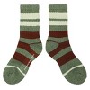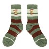 Enjoy your favorite movies in comfort with these Shrek athletic camping crew socks. The socks come in green with brown and white stripes and feature embroidered art of Shrek's face while brown letters spell out, "Beware Ogre." The socks feature a thick polyester spandex knit and come with cushioned footbeds and arch compression for extra comfort and support. The socks fit a sock size of 10-13 and a shoe size of 8-12. Shrek fans will love these cozy crew socks.