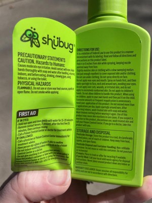 Clever name. Shubug. That's exactly what it does, the name says it all. Repels against mosquitoes, chiggers, and ticks. Made with natural oils and I love the design of the bottle because it easily fits in my hand and I can spray it out in any direction. Mom tested mom approved