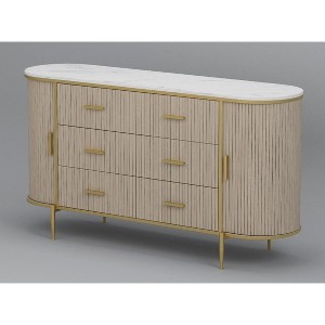 【Elegant Mid-Century Modern Design】 Showcases a unique fluted wave-panel front and a curved silhouette; Accented with gold-tone handles and a durable faux marble top for a chic look.