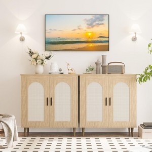- Elegant Design: This storage cabinet features PE rattan decor doors and solid wood feet, the rattan decorated doors combining aesthetic beauty with great practicality and adding a touch of sophistication to any room.It adopts natural rattan with handmade weaving technology, the natural rattan not only has the effect of absorbing and heat but also delivering perfect visual effect.