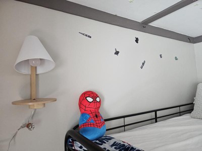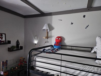 Put this up for my sons upper bunk bed so he can use to read up there. He loves it! Putting up was an easy set up, came with screws. The back is narrow so it makes it a little flimsy. After it was screwed on, it moved a little bit.