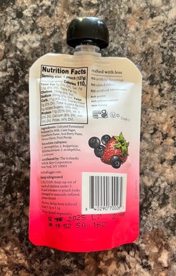 cultured pasteurized reduced fat milk, cane sugar, strawberry puree, acai berry puree, natural flavor, fruit pectin. live active cultures: s. thermophilus, l. bulgaricus, bifidobacterium, l. acidophilus, l. paracasei.
