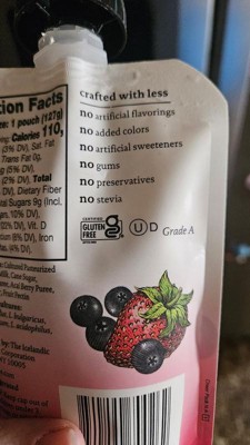 [This review was collected as part of a promotion.] I love the convenience of it being in a pouch, I can just throw it in my lunch box to enjoy at work. It has a delicious, tart flavor. I also love that it doesn't have a lot of additives, but does have 11g of protein. I will definitely be buying these for snacks at work.