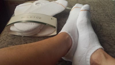 Goldtoe sneaker fit socks are the perfect lightweight and airy summertime socks. They are knit with Spandex and added silicone grips which make for a great choice in a non-slip fit. Goldtoe provides a light compression around your arc for the best all day comfort. I love that they are also supplied with breathable mesh panels to be light airy and cool all day!