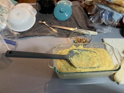 I am a full time caregiver who is cooking meals and making baked goods every day. I love this big silicone spoonula because it’s incredibly sturdy, and the one piece construction means it’s also easy to keep clean. Two days ago I mixed up banana bread with it. Today I was making caramel fudge.I have had no problems incorporating ingredients into thick Doug’s and batters, and this tool is easy to get clean.