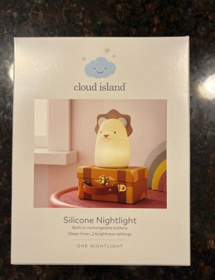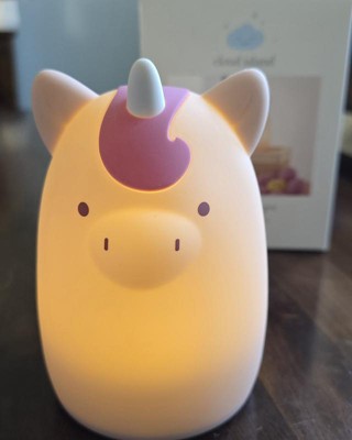 The Cloud Island Unicorn silicone nightlight is a very cute little nightlight. Lots to love about this item! Made of silicone therefore it is soft, easy for little ones to carry and can easily wipe off. Like the timer options. Like the "tap" function to make dimmer. Couple of things not likeable. Battery life is only about 7 hours, therefore will not last all night. Does not come with charging cable.