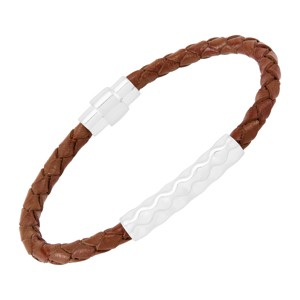 - Sterling silver with brown leather