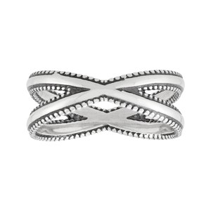 Embrace a bold look with this edgy ring. It combines a crisscross design with intricate beaded edges. The intersecting bands create a striking pattern, while the textured beading adds depth and flair. This ring is a perfect blend of chic and eccentric. The piece comes with a “.925” sterling silver quality stamp. Nickel-free and hypoallergenic, this style comes beautifully presented in signature packaging.