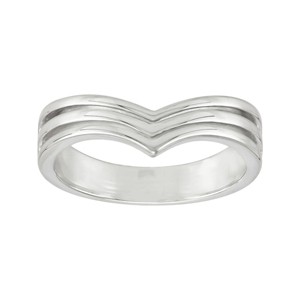 This sterling silver ring is designed with a distinctive chevron shape and offers a modern take on classic styling. The raised edges create a layered effect, adding interest to its minimalist design. The smooth band ensures a comfortable fit for daily wear. The piece comes with a “.925” sterling silver quality stamp. Nickel-free and hypoallergenic, this style comes beautifully presented in signature packaging.