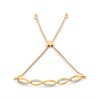 Delicate yet eye-catching, this diamond bolo bracelet is the perfect balance of everyday elegance and modern style. Crafted from fine .925 sterling silver with your choice of 14K rose gold plating or 14K yellow gold plating, each design features shimmering natural diamonds set in striking open motifs—whether as a single prong-set line of sparkle or as a graceful twist of polished and diamond-lined ribbons. Both styles are linked to a sleek adjustable wheat chain bracelet, finished with a secure bolo clasp and ball ends, allowing the fit to be customized from 4" to 10" for all-day comfort. A versatile piece that pairs effortlessly with casual and dressy looks alike, this bracelet is destined to become a cherished favorite in any jewelry collection.
