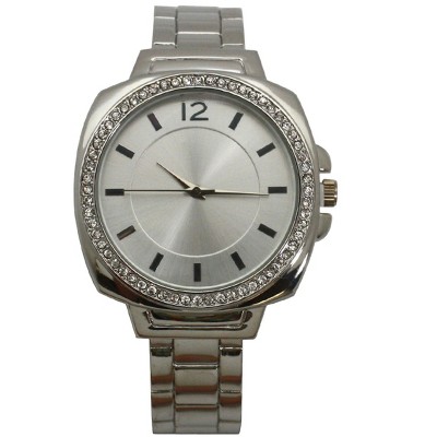 SILVER RHINESTONE DETAIL SQUARE FACE CUFF WATCH