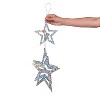 We hope your party shines as bright as these Silver Stars. An eye-catching addition to your party supplies, these sparkly, twirling foil stars are perfect party decorations for a New Year’s Eve party, wedding reception, anniversary party and more. Easy to hang, use them in your party photo booth to capture all the fun from your big celebration. Includes six 7 1/2" and six 13" cardboard stars with hangers.
