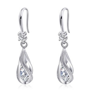 SmallRig Silver White CZ Teardrop Earrings, Spiral Bridal Dangle Jewelry for Gifts