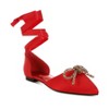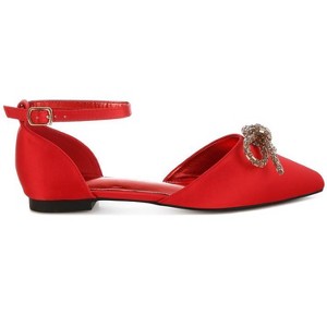 Slip into magnificence with these satin pointed-toe flat sandals! Adorned with rhinestone-embellished bows and detachable wrap-around laces, they’re the perfect pick for brides and bridesmaids, letting you style them two ways. Style and class, all in one! Type: Flat Sandals Upper Material: Satin Outer Sole: TPR Closed Pointed Toe Rhinestones Embellished Bow Detail Detachable Wrap-Around Laces Flat Heels Plush Cushion Insoles RCSH5115