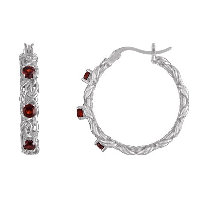 Simona Sterling Silver, 4mm Round Gem Infinity Design Earrings - Garnet - Red