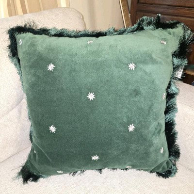 [This review was collected as part of a promotion.] This pillow is stunning in person. It is such a rich emerald green color. There are stitched stars with beads in the center of the stars. The fringe on the trim of the pillow is soft and adds such a beautiful look to this pillow. The pillow has a removable cover which makes it easier to spot clean if needed