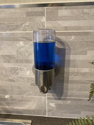This dispenser enjoys the usual high quality design and materials of Simplehuman products. It’s robust without looking cumbersome and easy to attach to tiled surfaces. What’s more it does away with soap bottles and makes more economical use of liquid soap. First rate product we are very pleased with our purchase.