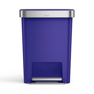 simplehuman 45L Rectangular Plastic Liner Rim Step Trash Can Indigo