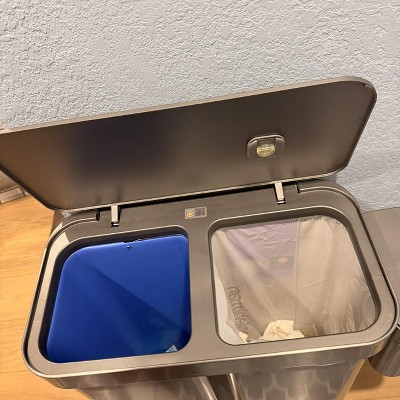 Love this combined trash/recycling can. Would like it even more if the lid raised on its own by just waving your hand in front of it.