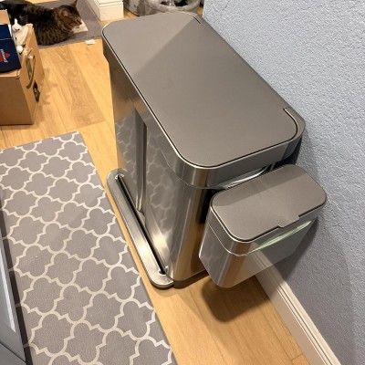 I’m buying my second simplehuman dual compartment trash can. The last one I’ve had for the 7 years. My dogs did some major work to this trash can throughout the years and it’s to the point it doesn’t open all the way when you step on it to open it. I’m sure I wouldn’t be purchasing a new one if my large food motivated dogs didn’t touch it. Perfect trash can to last for years and I highly recommend on buying one.
