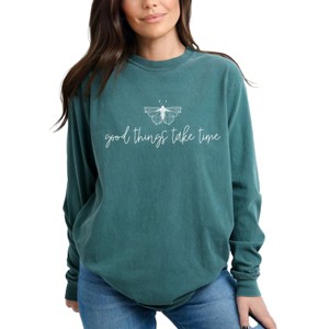 Simply Sage Market Good Things Take Time Butterfly Garment Dyed Long Sleeve - 1 of 4