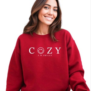 Product Name: Simply Sage Market S.W.Smiley Cozy Outline Sweatshirt - M - Cardinal