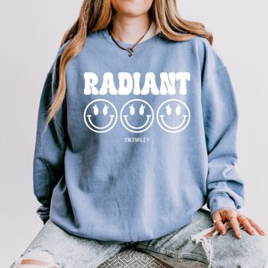 Product Name: Simply Sage Market S.W.Smiley Radiant Groovy Outline Lightweight Garment Dyed Sweatshirt - S - Blue Jean