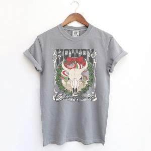 Product Name: Simply Sage Market Women's Howdy Christmas Bull Short Sleeve Garment Dyed Tee - L - Grey