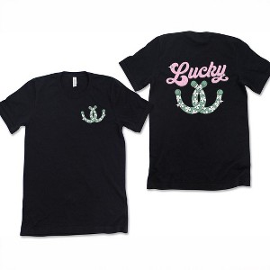 Simply Sage Market Women's Lucky Horseshoes Front and Back Short Sleeve Graphic Tee - 1 of 1