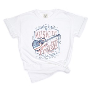 Simply Sage Market Women's Nashville Flag Guitar Short Sleeve Garment Dyed Tee - 1 of 2