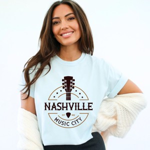 Product Name: Simply Sage Market Nashville Music City Guitar Garment Dyed Tee - S - Chambray