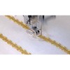 The Open Toe Foot can be used for machine appliqu, decorative stitching and many types of surface embellishment. The foot provides a clear view of the stitching area, and the tunnel on the underside of the foot allows dense stitches or raised trims to feed smoothly under the foot..