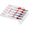 To prevent needles from going dull when not in use, store needles in the compact transparent case which includes size marking on its cover