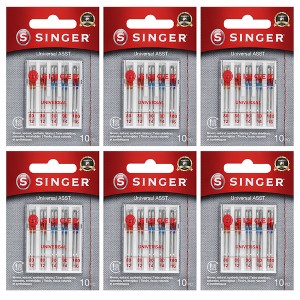Sewing machine needle set comes with 6 packs of universal regular point machine needles in assorted sizes for a total of 60 needles