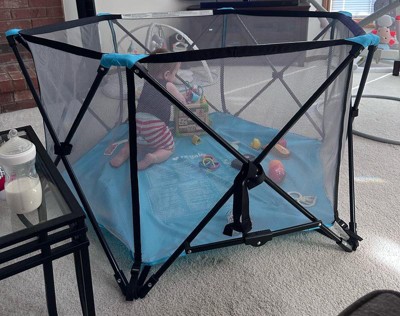 Easy to fold out and transfer to different places. No cushioning on floor though so I got a separate round play mat and my baby loves rolling around in it!!