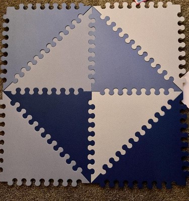 [This review was collected as part of a promotion.] I have a large play pen for my 11 month old twin boys and had been piling blankets under the fabric to give it more cushion because I hadn't found a mat that fit inside perfectly until I tried this one. Not only is it super cute, but it literally fits inside the play pen perfectly - like it was made for it! I love that you can customize the pattern to your liking - there are easy to follow steps for each design. I will say, my kids can easily pull the border or end pieces up, but that is not a huge issue. They love it and I love that it gives them a softer area to play on.