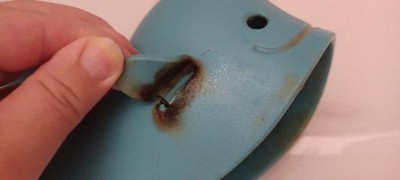 Q: How do I remove mold that has grown on this product? I just discovered mold and tried soaking in a mixture of bleach and water but there are still some stains.