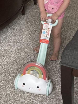 [This review was collected as part of a promotion.] This thing is super cute, and has rubber wheels that is perfect for any surface such as carpet, tile and etc... Cloud face is very adorable to look at. The handle folds nicely upright to make it easy to store. Overall, a great toy!